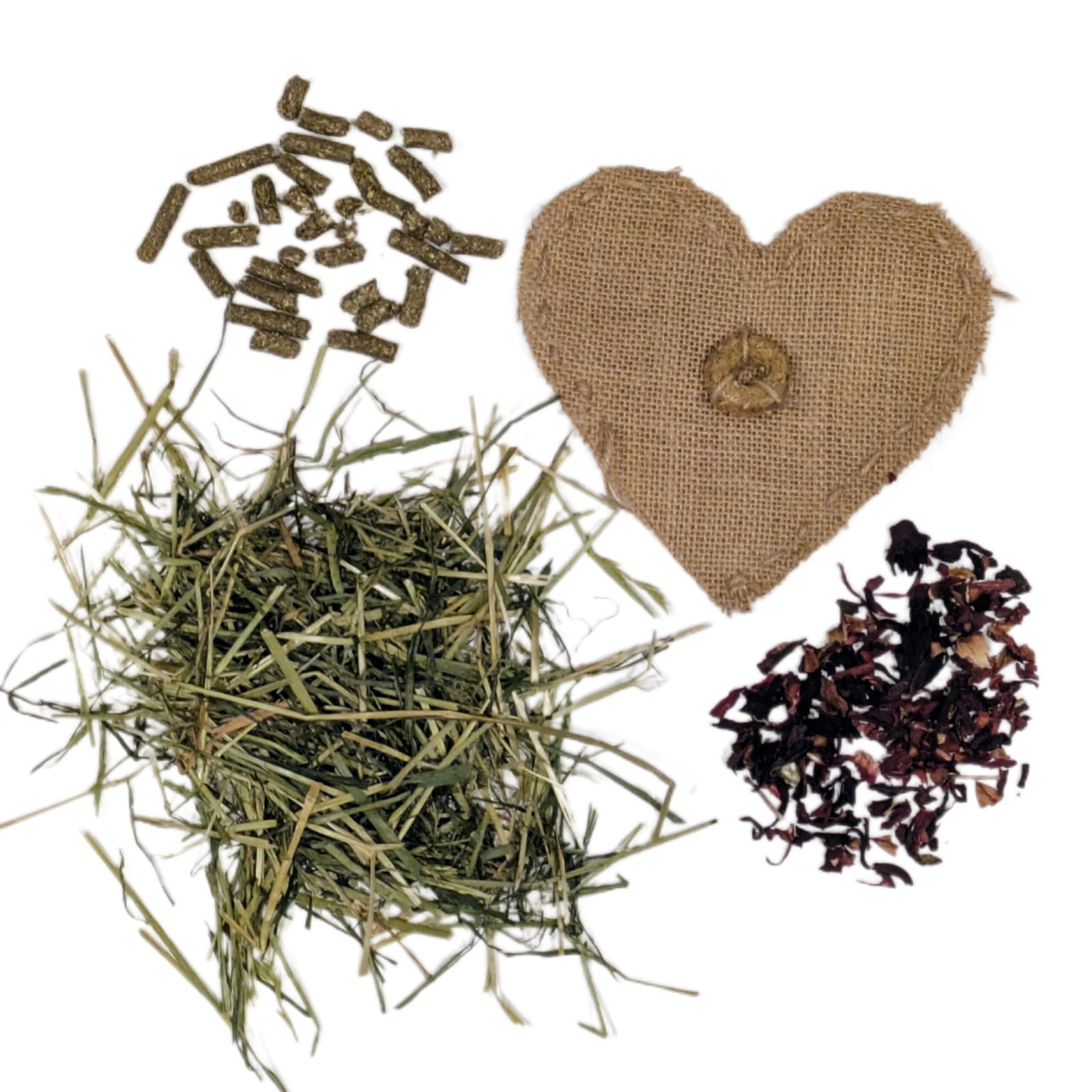Please remove contents from the ‘hearts’ and feed separately if your bunnies have a tendency to ingest hessian.